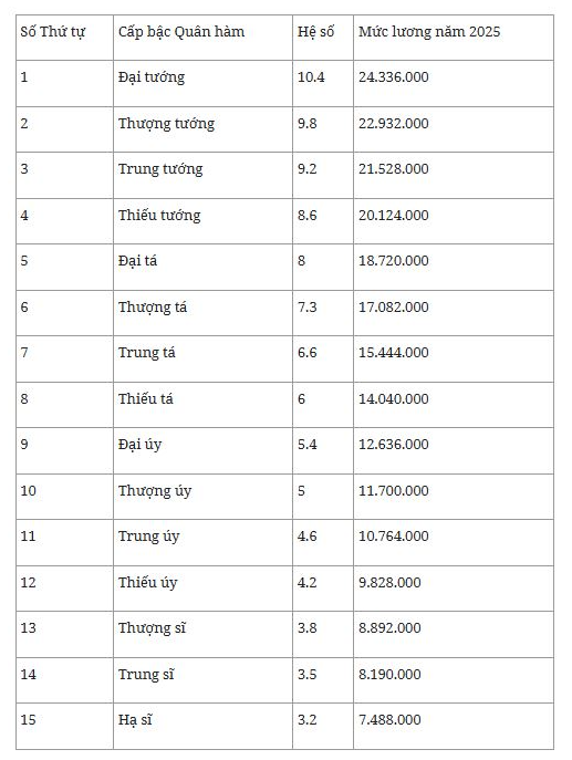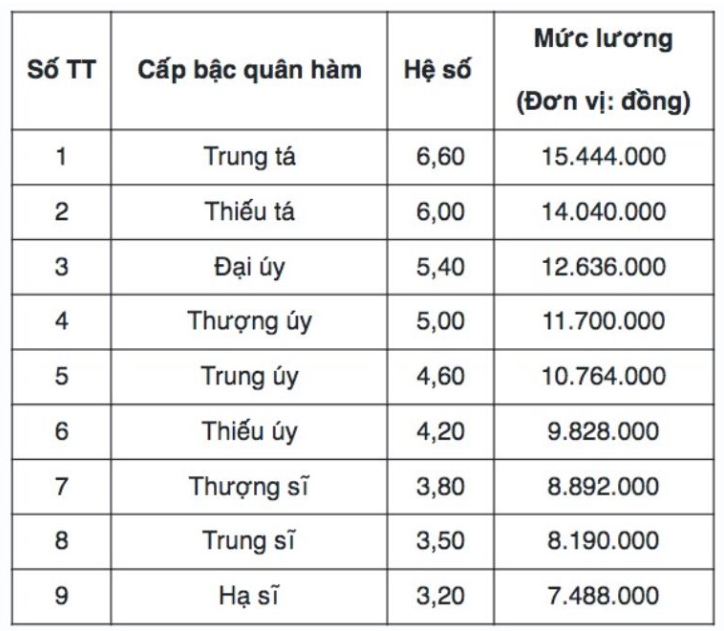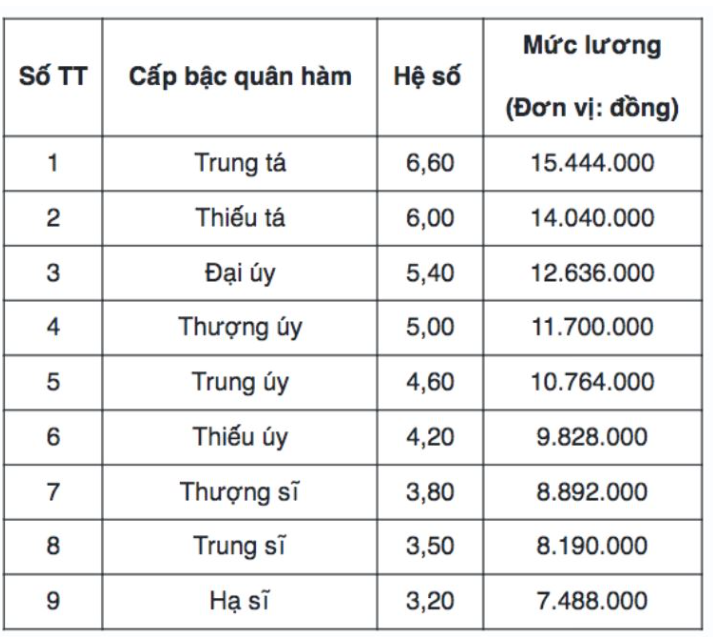 Theo b.áo Dân Việt, theo đó, Trung tá Công an nhân dân có hệ s.ố lương là 6.