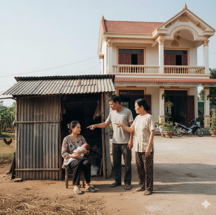 Suốt đêm hôm đó, tôi cũng biết vợ phải thức đêm chăm con vì con ốm, quấy khóc rồi nôn trớ. Tôi đi đường xa mệt quá nên lên nhà trên ngủ với bố mẹ.