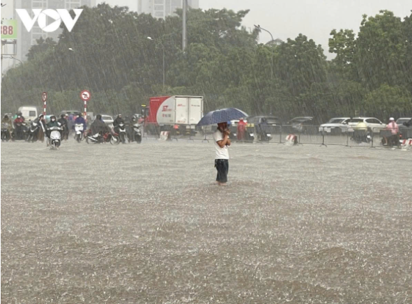Do ảnh hưởng của hoàn lưu bão số 10, Hà Nội mưa lớn kéo dài, nhiều khu vực rơi vào tình trạng ngập nặng