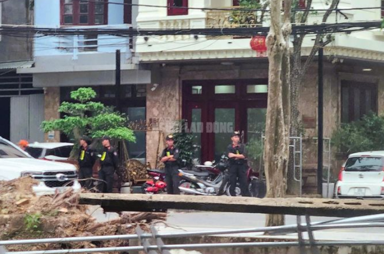 Ngoài hiện diện tại nhà ông N.X.B., cảnh sát cũng xuất hiện, phong tỏa trước ngôi nhà của ông V.V.H. (trên đường Triệu Quốc Đạt, phường Hạc Thành). Ông H. cũng là một giám đốc doanh nghiệp, là em vợ ông của ông N.X.B..