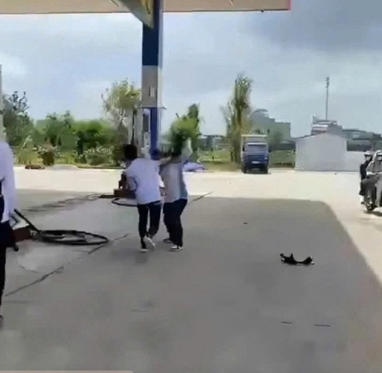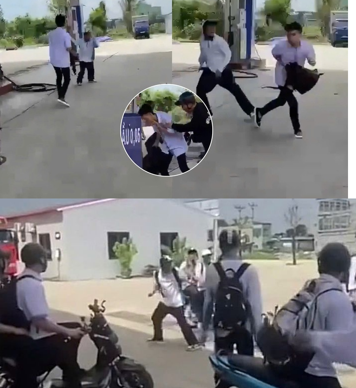 Hình ảnh nam sinh bị đ:âm ở khu vực cây xăng xã Quảng Bình, cách trường học khoảng 500m (Ảnh c:ắt từ clip).